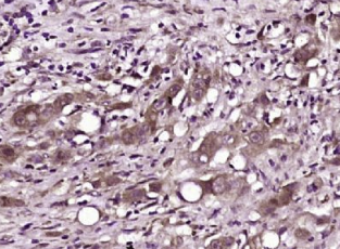 多聚甲醛固定,石蜡包埋(人胃癌);用柠檬酸钠缓冲液(pH6.0)煮沸15min后获得抗原;用3%过氧化氢阻断内源过氧化物酶20分钟;阻断缓冲液(正常山羊血清)37℃30min;抗体(AsC)多克隆抗体在1:40孵育。0在4°C下过夜,然后根据SP试剂盒(兔子)说明和DAB染色进行操作。