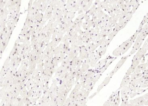 多聚甲醛固定,石蜡包埋(小鼠心脏);经柠檬酸钠缓冲液(pH6.0)煮沸15min后获得抗原;用3%过氧化氢阻断内源性过氧化物酶20分钟;阻断缓冲液(正常山羊血清)37℃30min;用(BNC1)多克隆抗体进行抗体孵育泰博体,未结合,1:400,4°C下过夜,然后根据SP试剂盒(兔子)说明和DAB染色进行操作。