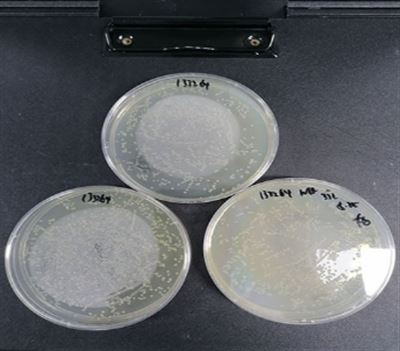①准备上述平板 1-2 块;②安全柜中打开,用酒精灯灼烧顶部,后迅速滴上无菌水使之破裂,随后用镊子将其敲碎;③吸取 0.5mL 无菌水打入冻干管,充分溶解菌粉后,打入平板中 200μL/个,涂布均匀;④将平板置于上述培养条件下培养,菌种长出即可使用。