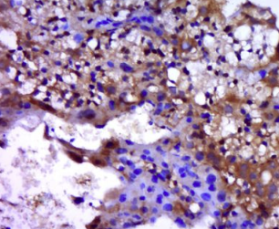 多聚甲醛固定,石蜡包埋(小鼠胎盘组织);用柠檬酸钠缓冲液(pH6.0)煮沸15min后获得抗原;用3%过氧化氢阻断内源过氧化物酶20分钟;阻断缓冲液(正常山羊血清)37℃30min;用β细胞培养液进行抗体孵育nin)未结合的多克隆抗体在1:400下在4°C下过夜,然后结合二级20分钟,DAB染色。