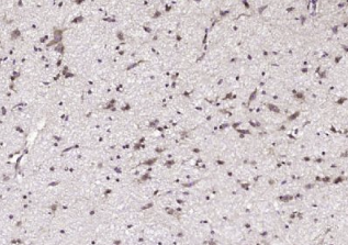 多聚甲醛固定,石蜡包埋(小鼠小脑);经柠檬酸钠缓冲液(pH6.0)煮沸15min后获得抗原;用3%过氧化氢阻断内源过氧化物酶20分钟;阻断缓冲液(正常山羊血清)37℃30min;抗体(AKRD33 B)多克隆抗体在1:200孵育。在4°C下过夜,然后根据SP试剂盒(兔子)说明和DAB染色进行操作。