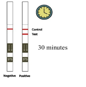 阳性结果:当质控区和样本区都出现了红色条带时则判断为阳性,条带模糊也判定为阳性